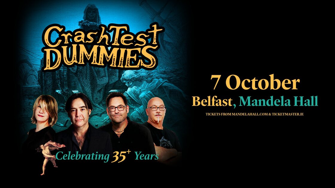 Crash Test Dummies play Mandela Hall, Belfast on October 7, 2026. One of the most distinctive bands to emerge from the 1990s alternative scene, they rose to international attention with songs like “Mmm, Mmm, Mmm, Mmm” and “Superman’s Song,” and the multi-platinum album God Shuffled His Feet.