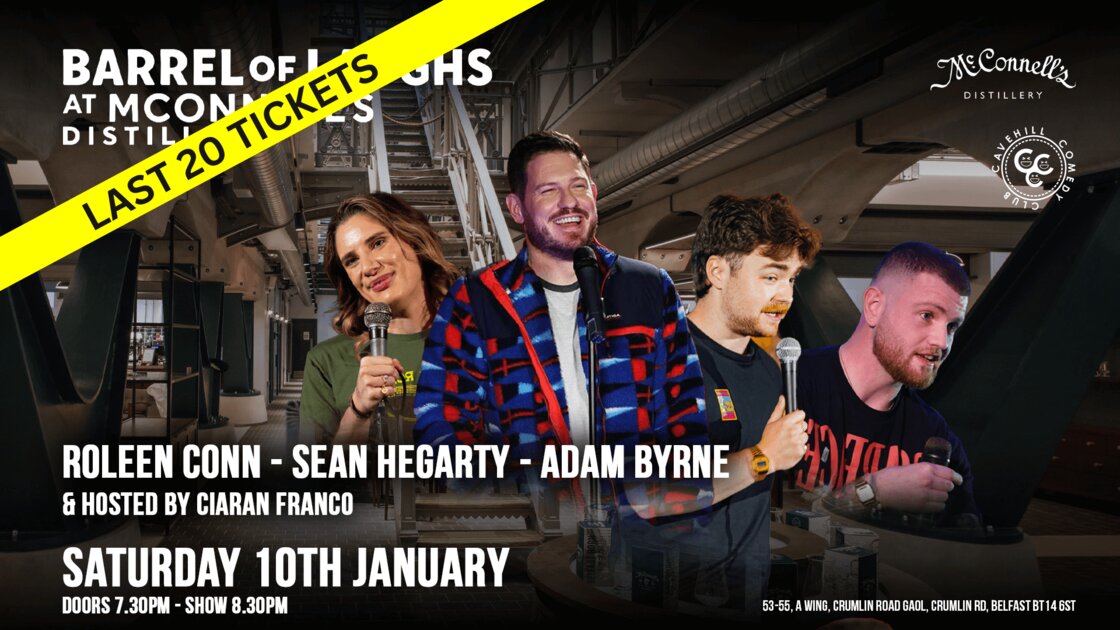 🥃 We kick start 𝟮𝟬𝟮𝟲 with a BANG on 𝗦𝗮𝘁𝘂𝗿𝗱𝗮𝘆 𝟭𝟬𝘁𝗵 𝗝𝗮𝗻𝘂𝗮𝗿𝘆 with 𝗦𝗲𝗮𝗻 𝗛𝗲𝗴𝗮𝗿𝘁𝘆 (Ireland’s Got Talent) at 𝗠𝗰𝗖𝗼𝗻𝗻𝗲𝗹𝗹’𝘀 𝗗𝗶𝘀𝘁𝗶𝗹𝗹𝗲𝗿𝘆 for a ‘𝗕𝗮𝗿𝗿𝗲𝗹 𝗼𝗳 𝗟𝗮𝘂𝗴𝗵𝘀’.