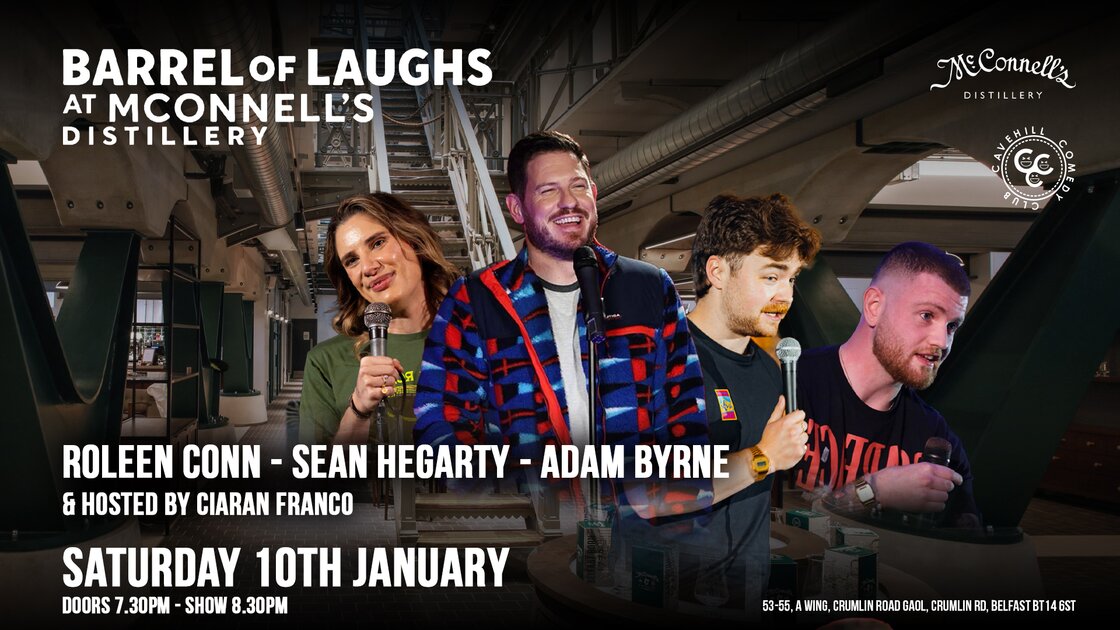 🥃 We kick start 𝟮𝟬𝟮𝟲 with a BANG on 𝗦𝗮𝘁𝘂𝗿𝗱𝗮𝘆 𝟭𝟬𝘁𝗵 𝗝𝗮𝗻𝘂𝗮𝗿𝘆 with 𝗦𝗲𝗮𝗻 𝗛𝗲𝗴𝗮𝗿𝘁𝘆 (Ireland’s Got Talent) at 𝗠𝗰𝗖𝗼𝗻𝗻𝗲𝗹𝗹’𝘀 𝗗𝗶𝘀𝘁𝗶𝗹𝗹𝗲𝗿𝘆 for a ‘𝗕𝗮𝗿𝗿𝗲𝗹 𝗼𝗳 𝗟𝗮𝘂𝗴𝗵𝘀’.