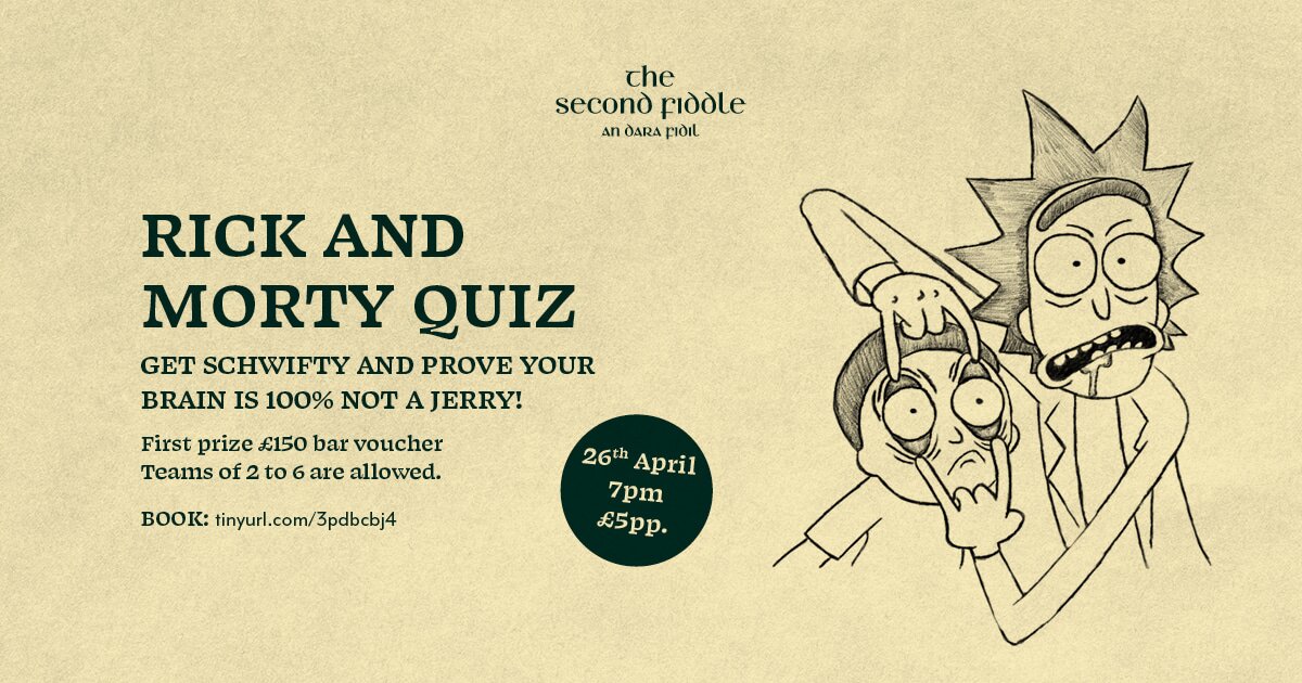 Get schwifty and prove your brain is 100% not a Jerry! Join us at The Second Fiddle for a Rick and Morty Quiz Night that’s more twisted than a portal gun malfunction.