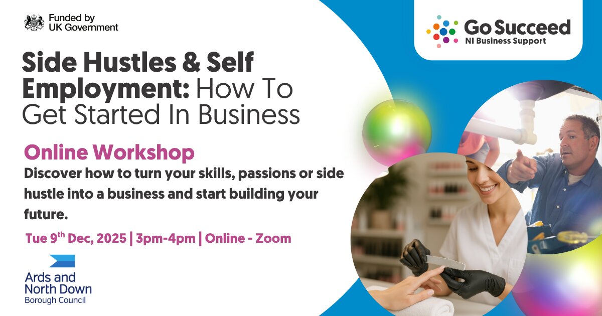 If you’re not currently working in the Ards and North Down Borough Council area but would like to consider working for yourself or turning your side hustle into a business then we want to hear from you…